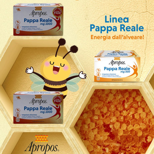 Dal cuore pulsante dell’alveare arriva la forza vitale che la natura ha pensato per i momenti più impegnativi: Apropos Pappa Reale 1000 mg.