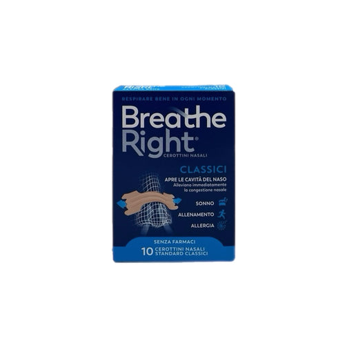 Breathe Right Classici Allevia Congestione Nasale Sonno Allenamento Allergia Cavità Nasali No Farmaci 10 Cerottini