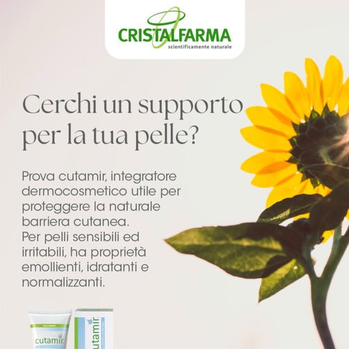 Cutamir di Cristalfarma è la crema ideale per prendersi cura della tua pelle e di quella della tua famiglia con dolcezza ed efficacia. Questa formulazione in crema, arricchita con sostanze di origine naturale, è progettata per offrire un trattamento addolcente quotidiano adatto a tutti i tipi di pelle e a tutte le fasce d'età, con un'attenzione speciale per le pelli delicate e sensibili dei bambini.