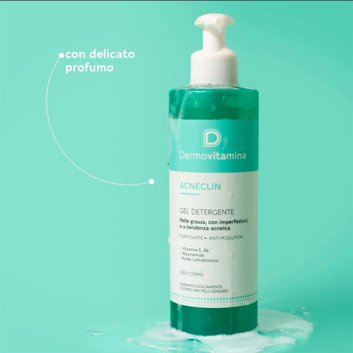 Dermovitamina Acneclin Gel Detergente è il tuo alleato quotidiano per una pelle più pulita, fresca e visibilmente più sana.