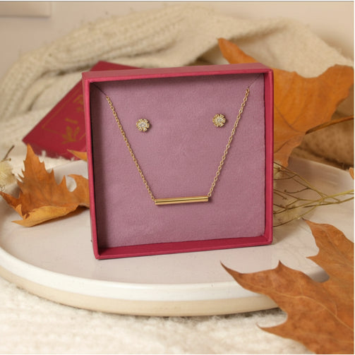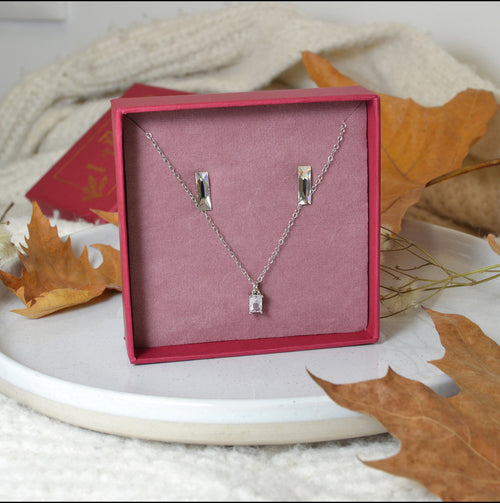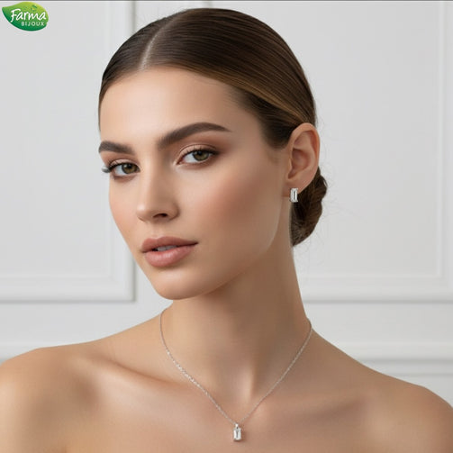 Farma Bjoux Fashion Box Parure Orecchini + Collana Barre Baguette Perle Pelle Sensibile Adatto Tutti
