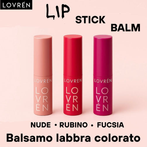 Lovrén Lip Stick Balm LB1 Nude LB2 Rubino LB3 Fucsia Balsamo Labbra Colorato Morbide Protette Finish Luminoso Naturale 3,5g