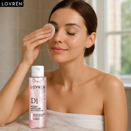 Scopri la freschezza e la praticità di Lovrén D1 Acqua Micellare Senza Risciacquo, il segreto per una pelle sempre pulita, idratata e radiosa. Un solo gesto ti libera da trucco, impurità e residui, rispettando l’equilibrio cutaneo anche delle pelli più delicate.