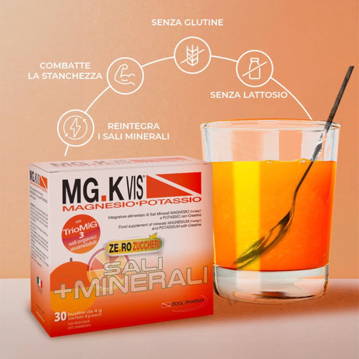 Mgk Vis Integratore Magnesio Potassio Sali Minerali Omaggio Telo Rinfrescante No Glutine Lattosio 30 Bustine Pool Pharma