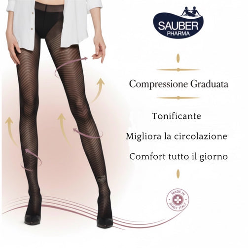 Approvati dal Collegio Italiano di Flebologia (CIF) e sottoposti a rigorosi test clinici per garantire l'efficacia, i collant Sauber sono prodotti e confezionati interamente in Italia, per offrirti la massima qualità e affidabilità.