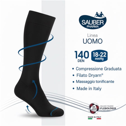 🖤 Sauber Uomo Dryarn® Nero 140 DEN – La calza terapeutica che unisce tecnologia, stile e benessere. Per gambe leggere, sostenute e impeccabili, ogni giorno.