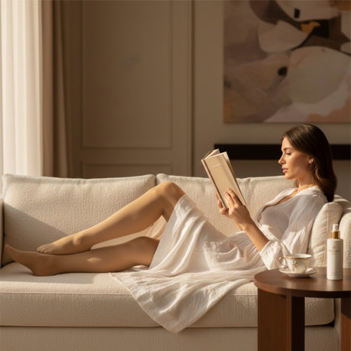 La compressione graduata (18–22 mmHg) esercita un’azione mirata che stimola la circolazione sanguigna e favorisce il drenaggio linfatico, contrastando varici, edemi lievi e gonfiori. Ideali per chi trascorre molte ore in piedi o seduta, aiutano a prevenire il peggioramento della dilatazione venosa e mantengono le gambe riposate e vitali.