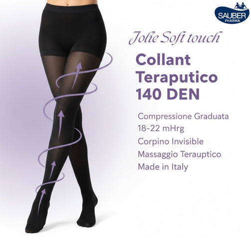 I Collant Jolie Soft Touch 140 DEN di Sauber Pharma rappresentano l’essenza del benessere e della femminilità moderna. Un collant tuttonudo e invisibile, perfetto per chi desidera un effetto naturale e una sensazione di leggerezza continua, senza rinunciare al sostegno terapeutico.