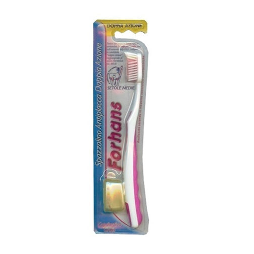 Setole in Tynex con punte arrotondate. manico ergonomico. Testina studiata per una radicale eliminazione della placca dentale.