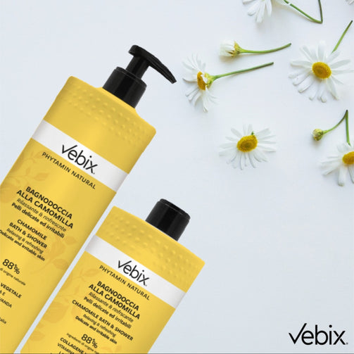 Vebix Bagnodoccia alla Camomilla, pensato appositamente per le pelli delicate e irritabili. Con il suo mix unico di ingredienti naturali, questo delicato detergente non solo pulisce la pelle con dolcezza ma la avvolge in un abbraccio di cura e conforto.
