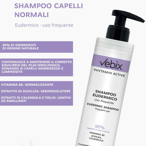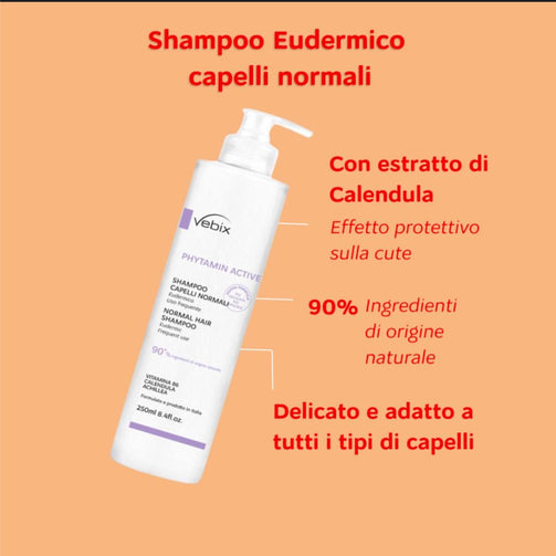 Vebix Shampoo Capelli Normali Eudermico Uso Frequente Delicata Efficace Phytamin Active 250 ml