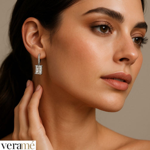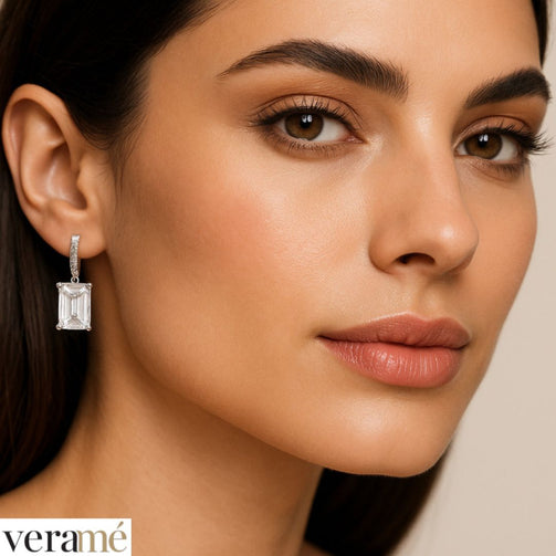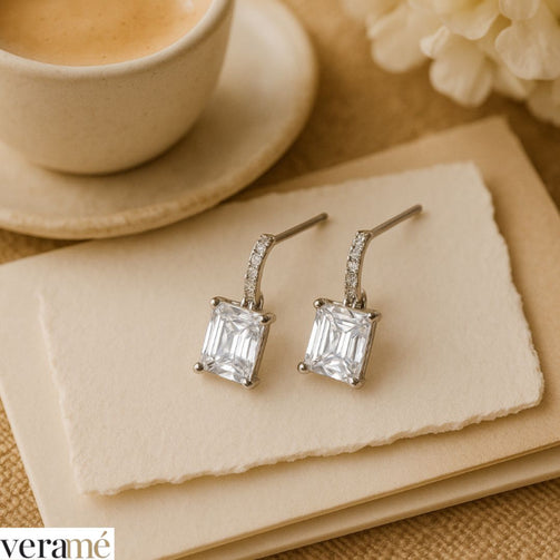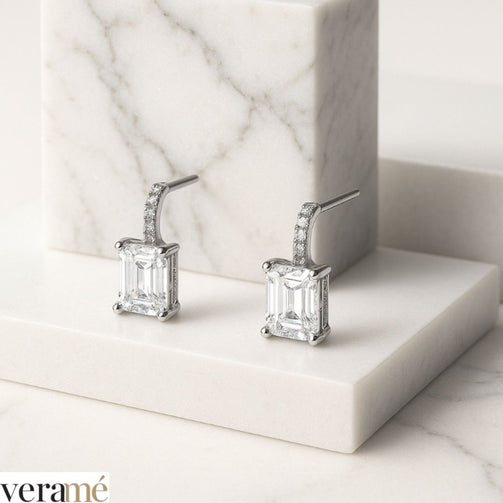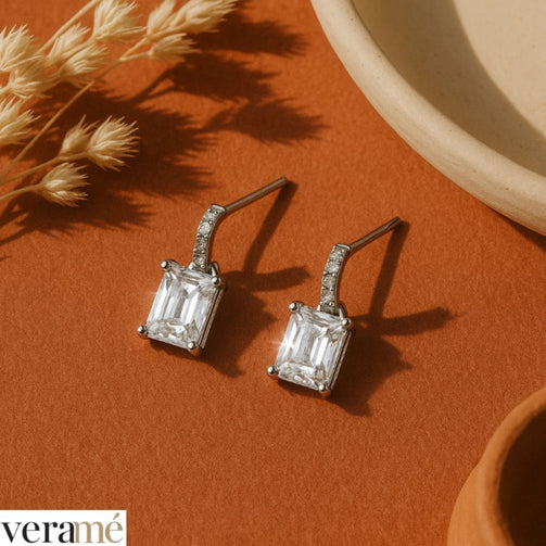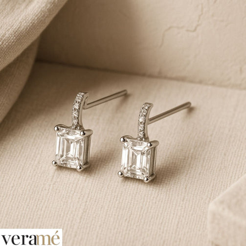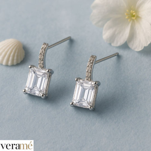 Veramé Orecchini Annalisa Baguette Semi Pendenti Argento Chiusura Farfalla