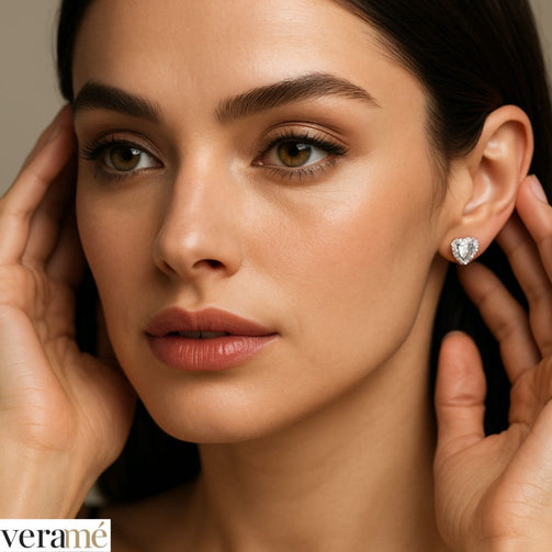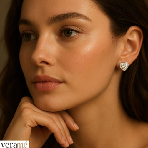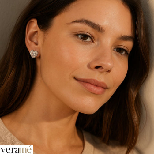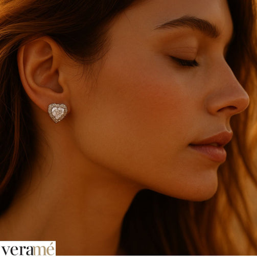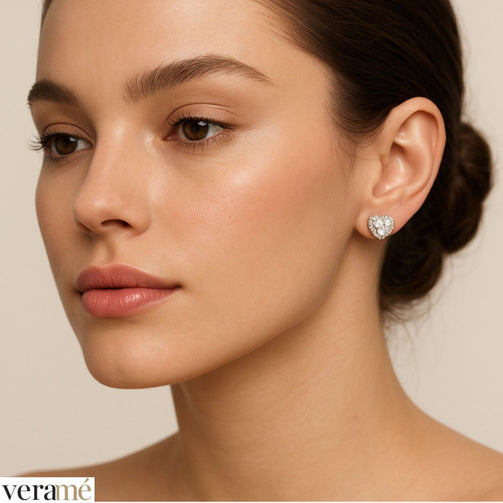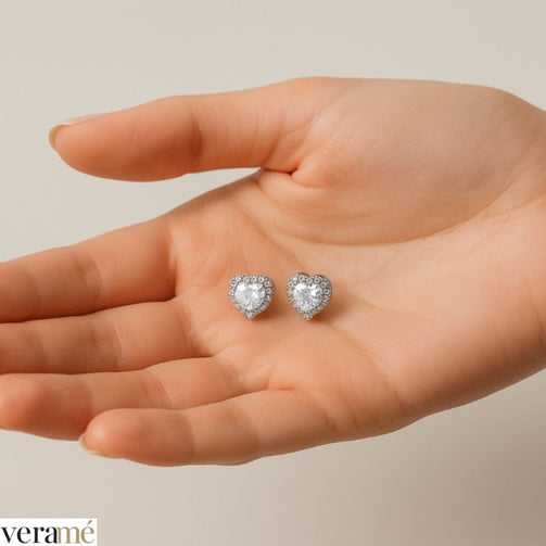 Veramé Orecchini Antonella Cuore Pietra Principale Grande Argento Chiusura Farfalla