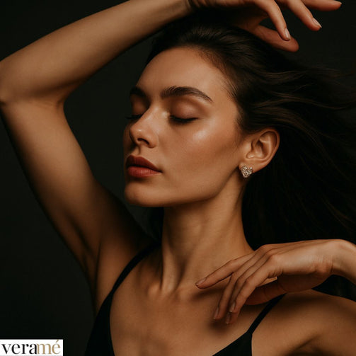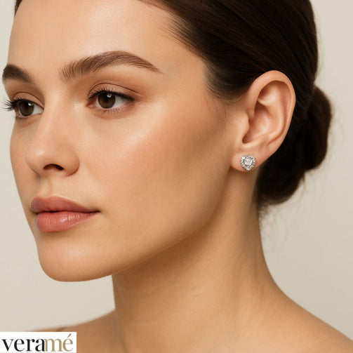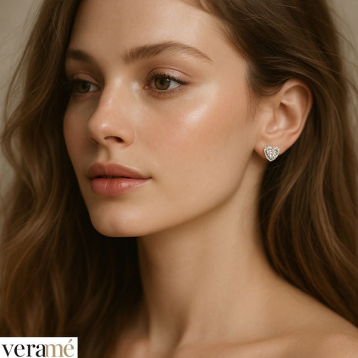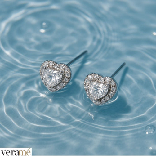 Veramé Orecchini Asia Pietra Centrale Forma Cuore Corona Piccoli Zirconi Argento Chiusura Farfalla