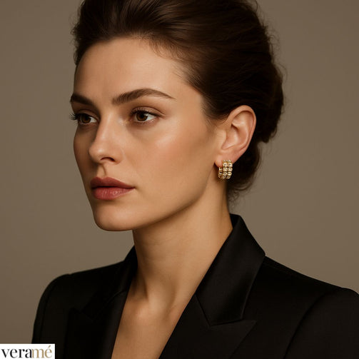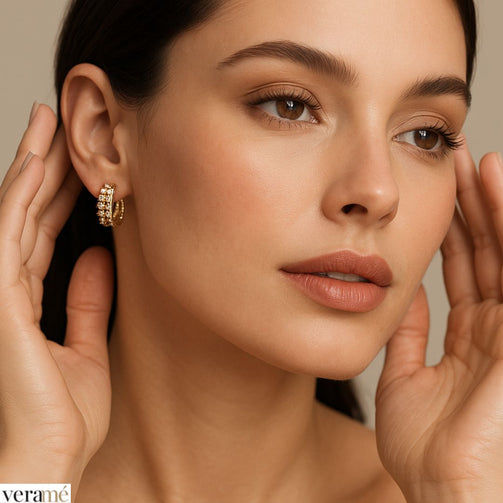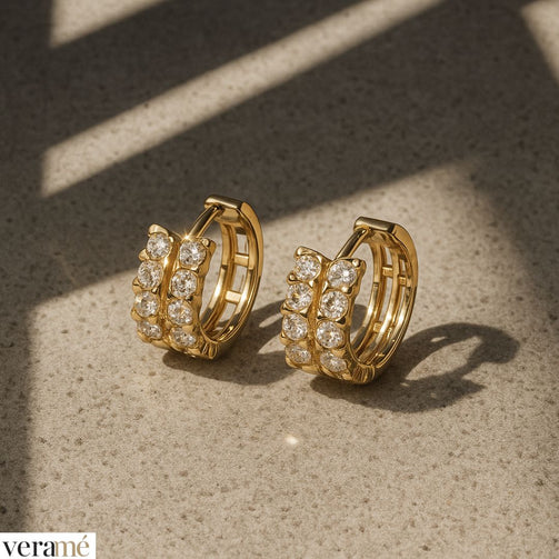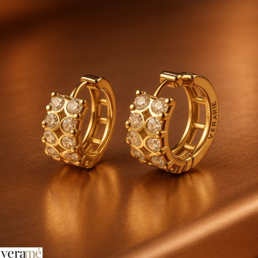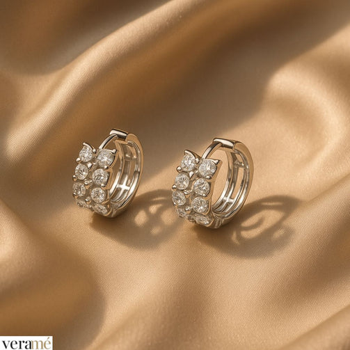Le pietre di alta qualità incastonate lungo il cerchietto aggiungono un tocco di brillantezza al gioiello. Queste pietre catturano e riflettono la luce, creando un effetto scintillante che valorizza sia l’orecchino che il volto di chi li indossa.
