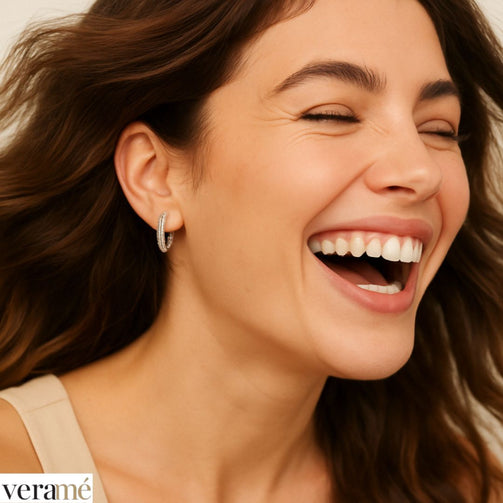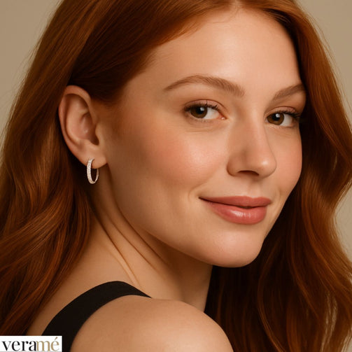 Il design degli orecchini è impreziosito da zirconi di alta qualità da 1,3 mm, distribuiti lungo il cerchio. Queste pietre riflettono la luce in modo sottile ma evidente, creando un effetto scintillante che valorizza sia l’orecchino che il viso di chi li indossa.