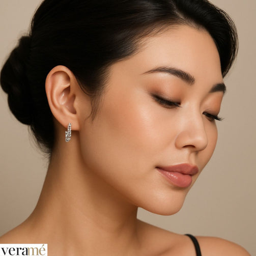 Veramé Orecchini Marta Argento Cerchietto Medio Pietre Chiusura Cerniera