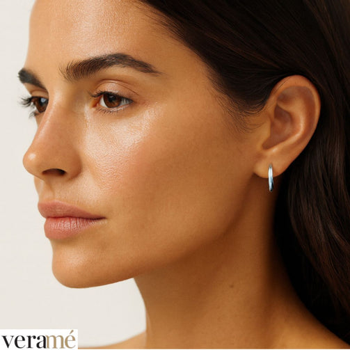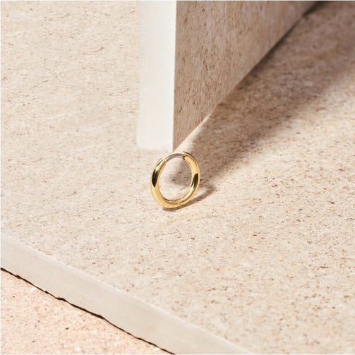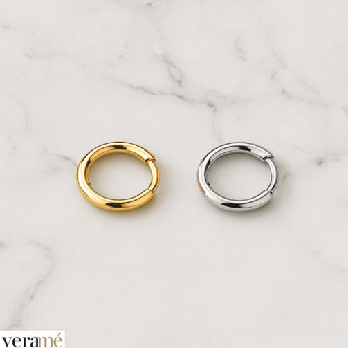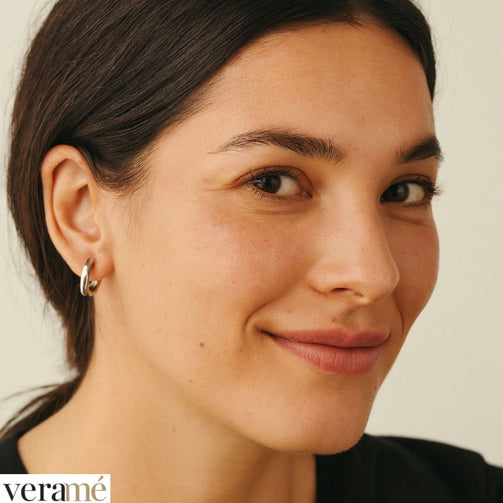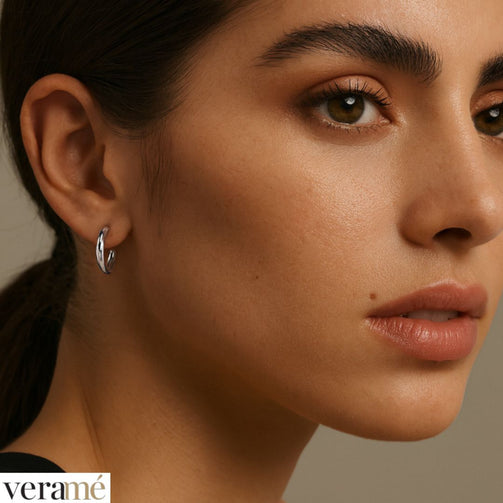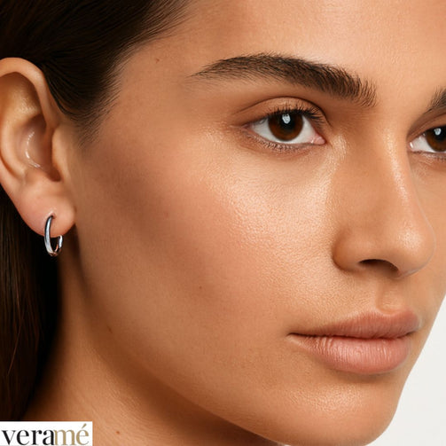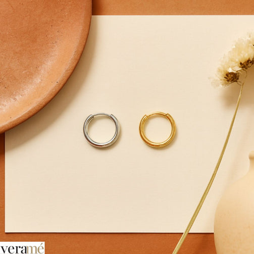 Con un diametro esterno di 13 mm e un perno di 8 mm, l’orecchino presenta dimensioni ottimali per garantire una presenza visibile ma non eccessiva. Queste proporzioni consentono all’orecchino di essere delicato ma allo stesso tempo distintivo.