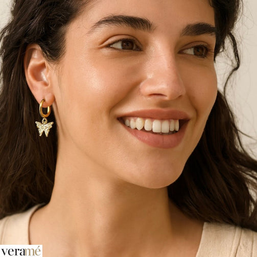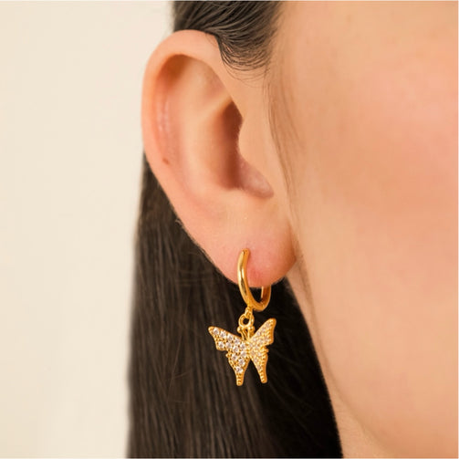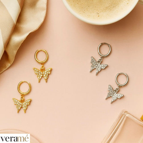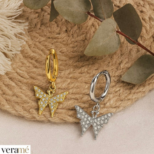 Il design con cerchietto medio e farfalle pendenti li rende un gioiello giocoso e incantevole, ideale per chi cerca qualcosa di speciale e unico. Le farfalle pendenti catturano la luce e il movimento, creando un effetto affascinante e leggero.