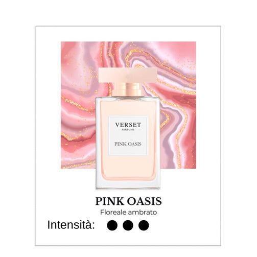 Scopri Verset Parfums Pink Oasis, il profumo pensato per la donna che vuole farsi ricordare. Un equilibrio perfetto tra delicatezza e carattere, che trasforma ogni spruzzo in un’esperienza sensoriale intensa e raffinata. Ispirato liberamente alla prestigiosa "Guidance Amouage", Pink Oasis unisce note floreali e ambrate in una composizione moderna e sofisticata.